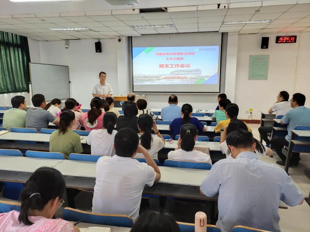 6月22日,土木工程系在南教105召开期末工作会议,就本学期各项工作进展落实情况进行总结,并部署下一阶段的工作。会议由系党总支书记文琳主持,系全体教职工参会。