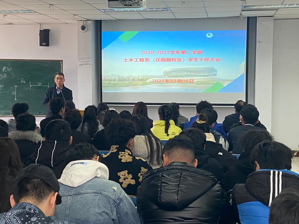 在学生干部大会上,文琳书记要求全体学生干部要认真履行职责,处理好工作与学习之间的关系;要做好学生与老师之间的桥梁,真正起到模范带头作用;要重视团结的力量,齐心协力,用实际行动助力土木工程系学生工作再上新的台阶。