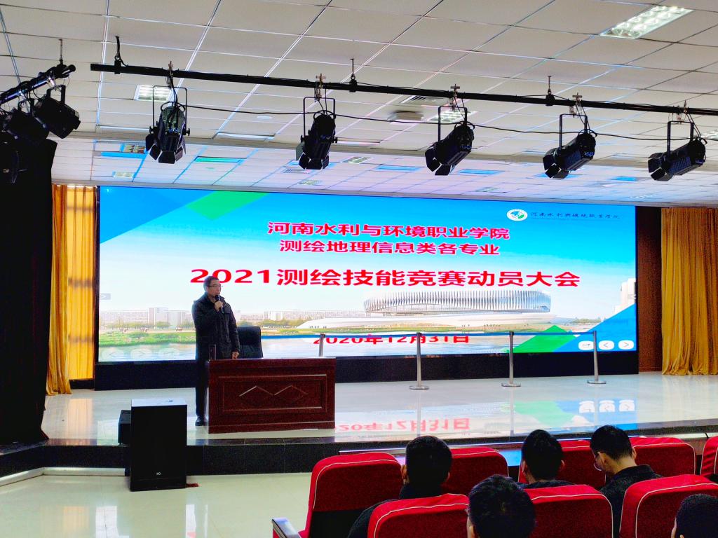 12月31号上午,我系在航空港校区德礼讲堂举行2021测绘技能竞赛动员暨2020级职业学习与职业发展导师专业指导大会。我系文琳书记、测量教研室全体教师及测量、测工、测信、地测、摄测的全体20级新生参加本次大会。