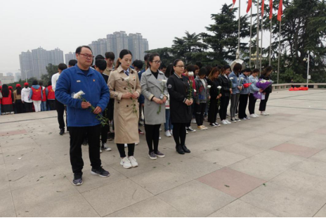 在革命英雄纪念碑前,师生们怀着无比崇敬的心情举行了隆重而庄严的祭扫仪式:齐唱国歌、敬献花篮、默哀致敬、党员教师重温入党誓词、学生代表团旗下演讲、团员青年重温入团誓词、纪念五四运动100周年微团课、寄语团员、齐唱共青团歌、参观纪念馆、互动展示。