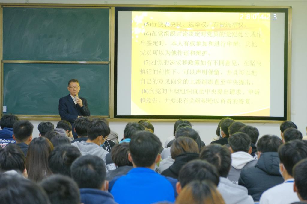 党课中,文琳从申请入党的基本条件、党员的义务、党员的权利等三个方面展开。他强调,入党是一件严肃且光荣的事情,在思想上要有追求,行动上要有付出,要充分发挥党员的先进性与模范带头作用,做一个对社会有用的新时代青年。