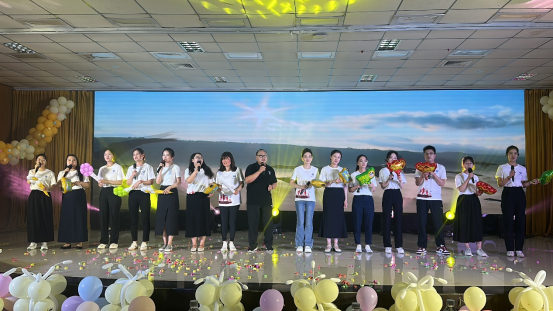 在“怀旧拾光· 80年代”中,舞蹈《不要问我什么是disco》伴随着强劲的音乐,戴着蛤蟆镜、身穿花衬衫和牛仔喇叭裤的表演者们手臂摆动、脚步交换、不断地跳跃旋转,将全场氛围瞬间推向高潮。歌曲《四大天王》和《爱》将时间拉回80年代,让大家感受我国改革政策带来的发展变化。务文涛老师和学生王宇辉合唱歌曲《光阴的故事》,表达了从初入校园到毕业之际,老师给予学生的悉心教导和依依惜别之情。