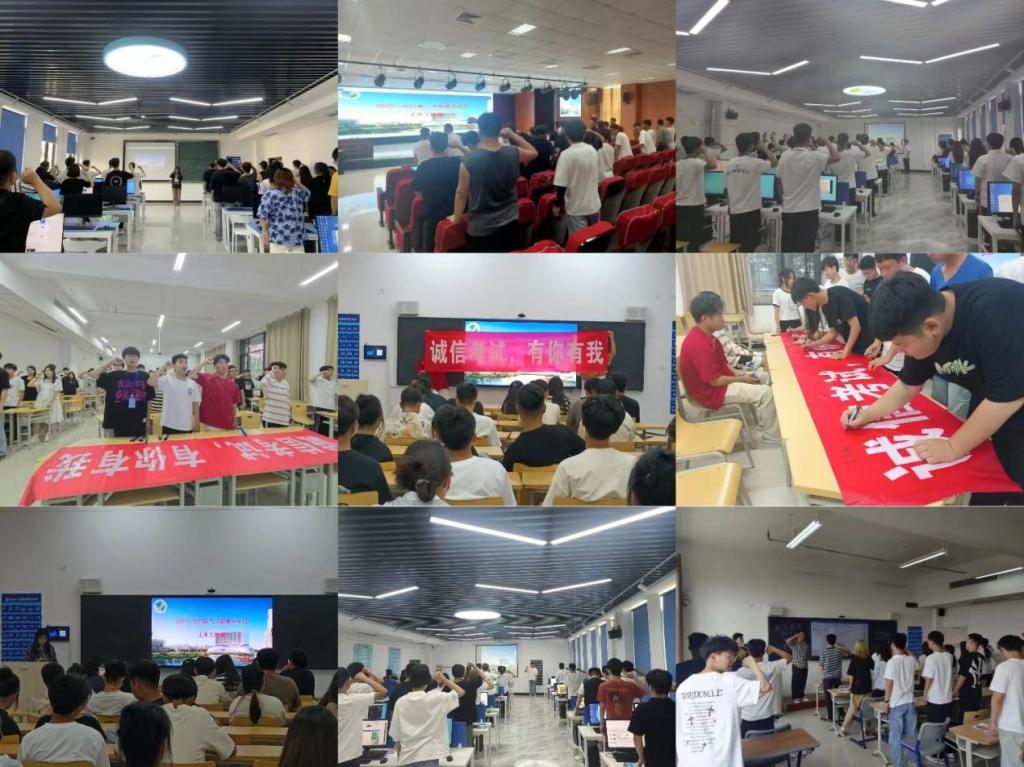 5月23日,土木工程系组织各班开展“诚信考试 有你有我”誓师活动。各班学生一同重温学习了考试有关规章制度,签订了《诚信考试守则承诺书》,并进行集体宣誓。