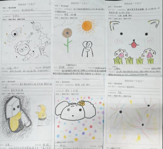 活动要求同学们在保留小黑点的基础上,发挥创意,采取多样化的形式进行绘画创作,阐释作品理念及活动感悟,同学们结合自身经历,把黑点视为自己遇到的困境、挫折和缺点,将其延展成色彩多样、形态各异的线条,把一个个看似无用的“黑点”转化成绘画作品中不可或缺的一部分,用自己手中的画笔把丰富的内心世界展示出来,以画抒情、以画交流。