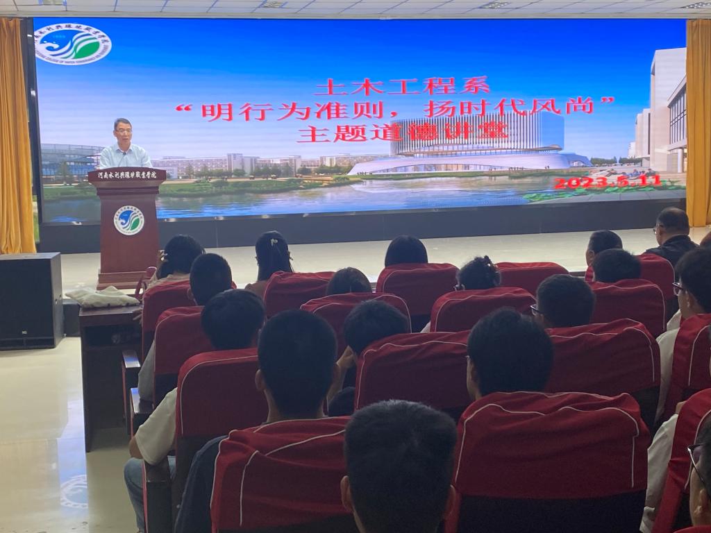 近日,土木工程系举办“明行为准则,扬时代风尚”道德讲堂活动,系党总支书记文琳、全体学管老师及300余名学生干事参加。