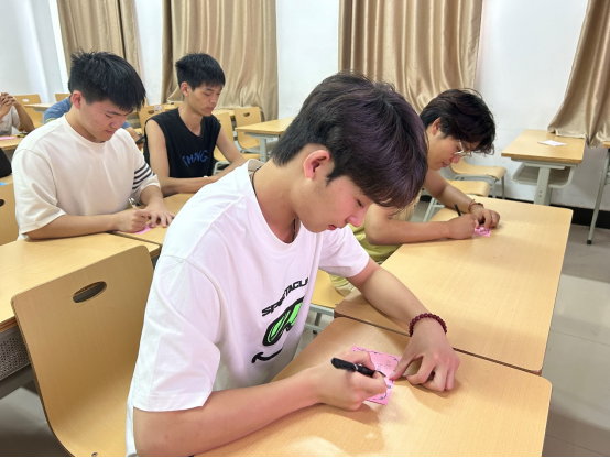此次主题活动共开设主题摄影、听歌识曲和书写感恩卡三个模块。在“主题摄影”活动中,同学们积极提交以父爱为主题的摄影作品,现场分享自己的感受和作品背后的故事,并将评选出的优秀作品在校园里进行展出。在“听歌识曲”环节,活动志愿者随机播放与父亲、父爱相关歌曲的音乐前奏,通过举手抢答的形式进行积分,答对一首加一分,在规定时间内积分最高的队伍获胜。在“书写感恩卡”中,同学们现场领取事先准备好的贺卡,用一把剪刀、一个胶棒、几张彩纸,精心制作出独具特色的感恩卡,将想对父亲说的心里话或祝福语或与父亲相关的散文诗写在卡片上,拍摄成照片后发送给自己的父亲。