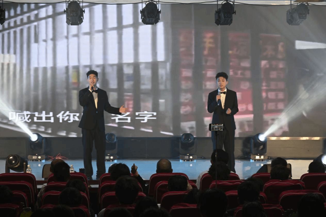 歌曲节目异彩纷呈,独唱、合唱、歌伴舞等多样形式轮番登场,学生们以清澈歌喉倾情演绎,歌曲《无名的人》以温暖旋律致敬校园建设者,触动全场心灵;在歌曲《光亮》中,学生用空灵的吟唱与戏曲唱腔穿插,构建出跨越时空的对话感。