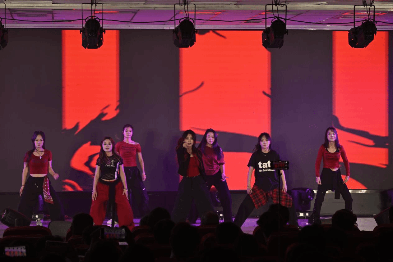 晚会以节目彩排花絮视频拉开序幕,生动呈现了为期一个月的筹备历程。整场晚会共呈现16个精彩节目,涵盖舞蹈、歌曲、朗诵、小品、戏曲等多种艺术形式。舞蹈篇章中,独舞的婉约灵动、双人舞的情感交织与群舞的磅礴气势交相辉映,其中,《锦绣汉风华》将古典舞的优美姿态与现代舞的自由律动相结合,形成独特风格;《劲舞风暴》以动感节奏与高难度动作,展现青春力量与蓬勃朝气。