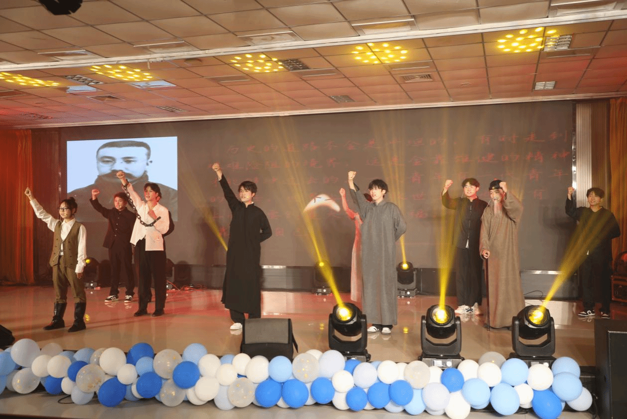 语言与戏曲节目同样亮点频出。豫剧《京都风云》中,学生扮演“净”角,唱腔如黄钟大吕,展现了传统戏曲艺术魅力,引得满堂喝彩;朗诵《觉醒年代》以革命先烈的赤诚丹心为魂,借学子深情演绎,传递穿越百年的家国情怀,展示了当代青年对红色基因的传承;配音与小品节目也在晚会中展现了同学们的想象力和青春创意,小品《万松书院》以温情为底色,通过幽默剧情展现深厚的师生情谊。现场掌声不断,气氛热烈。