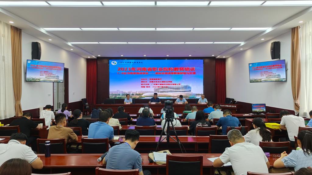 7月30日,由我校承办的河南省1+X测绘地理信息数据获取与处理省级师资培训班顺利开班。副校长张凌杰,广州南方测绘科技股份有限公司教育事业部经理、中测教育科技投资公司总经理董希彬,教务处处长包永刚及培训班全体学员参加开班仪式。仪式由土木工程系主任王玉振主持。