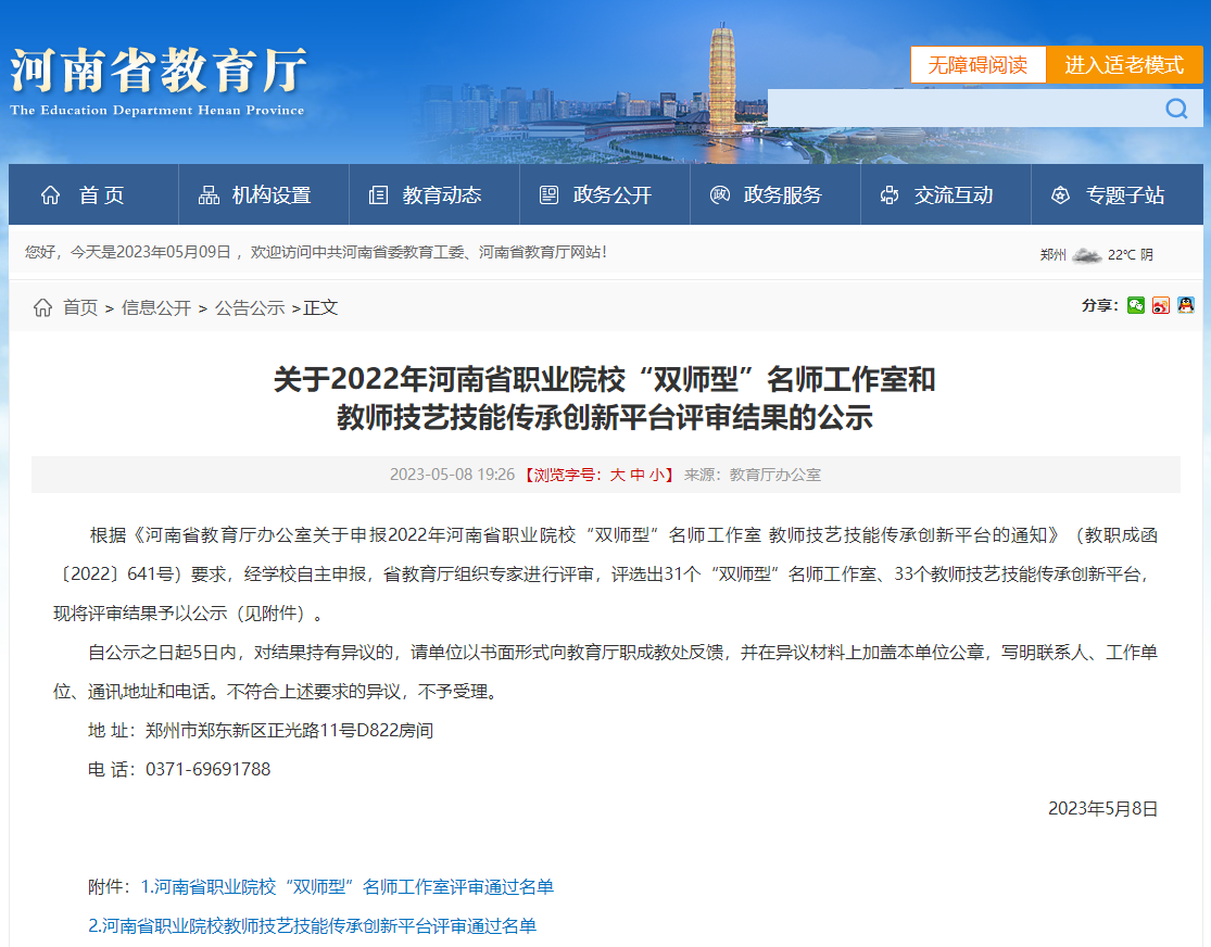 2023年五月,许占立技术技能大师工作室联合申报河南省职业院校“双师型”名师工作室。