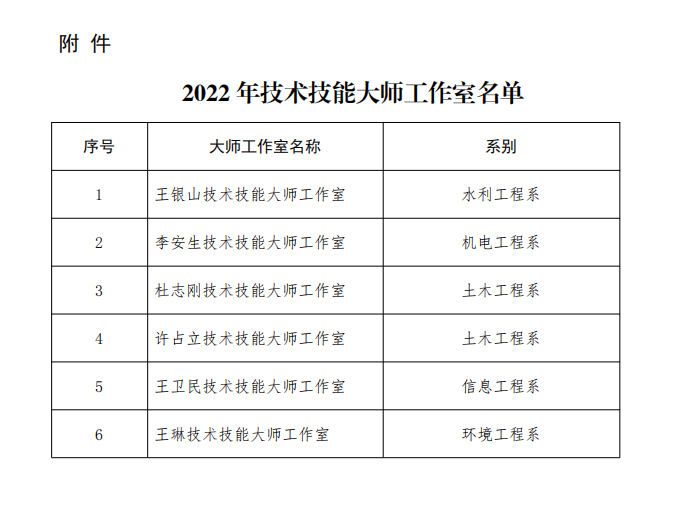 2022年3月,经系自主申报、专家评审、校长办公会会议通过,土木工程系成立杜志刚、许占立技术技能大师工作室。
