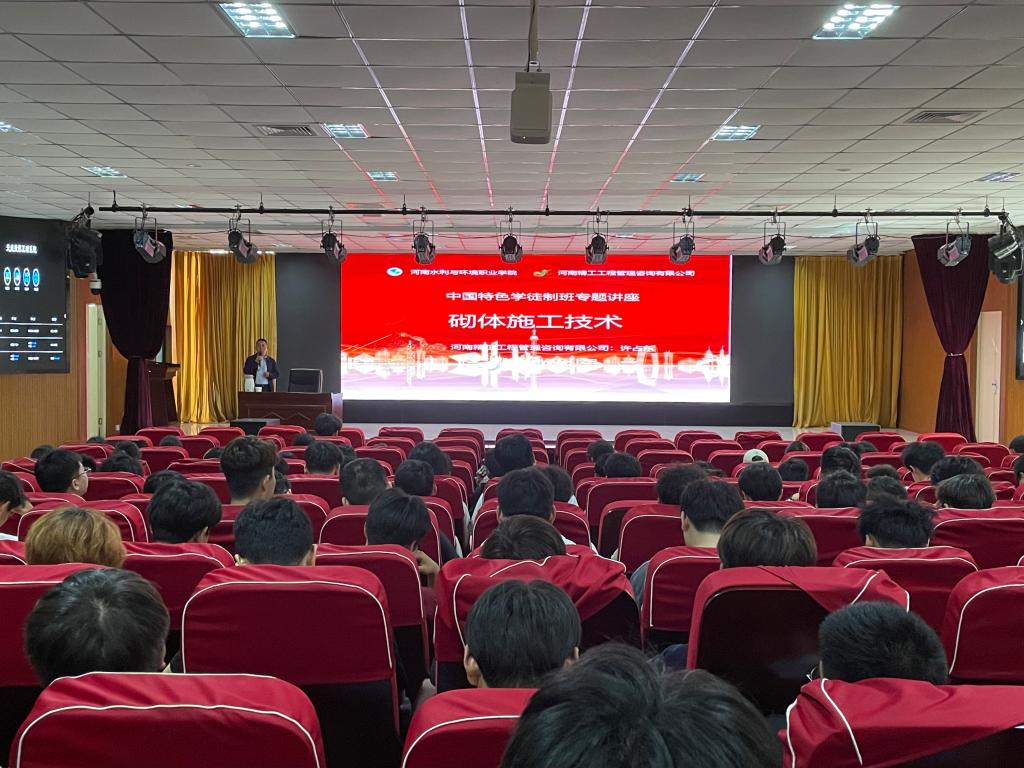 4月12日,土木工程系邀请河南精工工程管理咨询有限公司许占东工程师开展“砌体施工技术”专题讲座,系中国特色学徒制班全体学生参加。