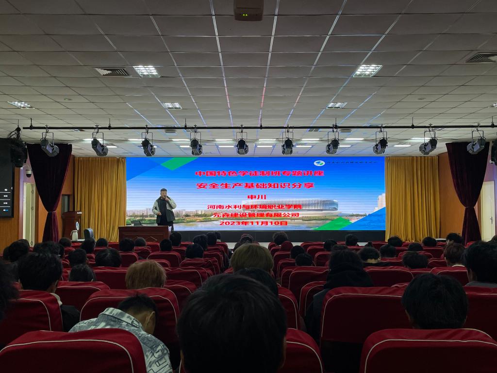 11月10日,土木工程系邀请2010级优秀校友、元森建设管理有限公司工程部经理申川回校开展“安全生产基础知识分享”专题讲座,系中国特色学徒制班全体学生参加。