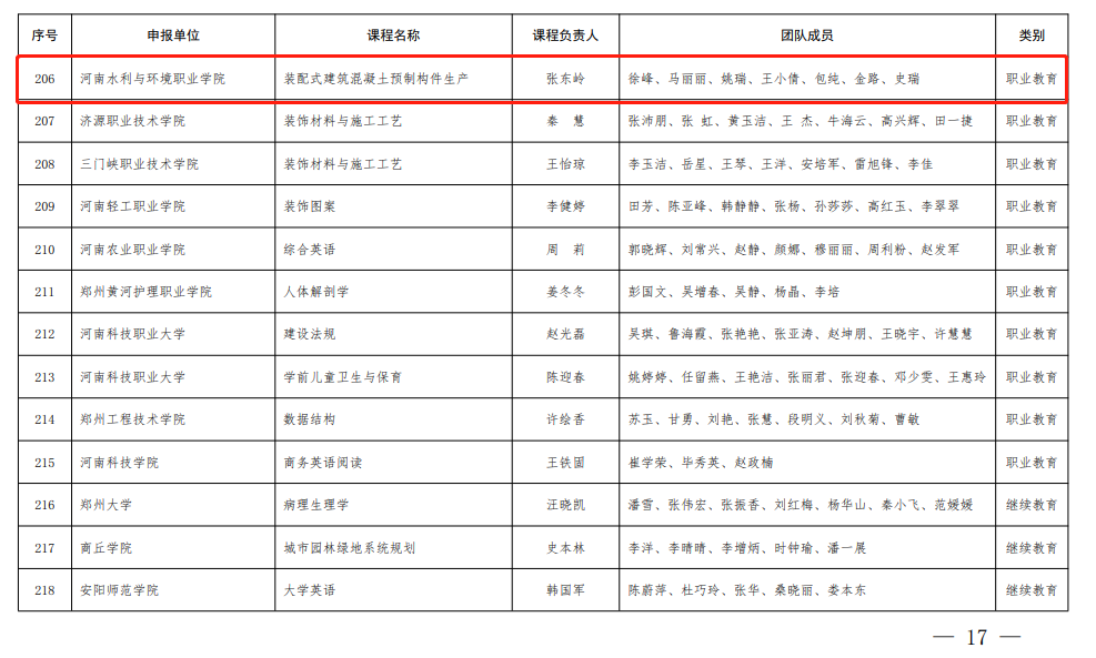 近日,河南省教育厅公示了2023年河南省职业教育和继续教育课程思政示范课立项名单,我校5门课程获批立项,我系《数字测图》、《装配式建筑混凝土预制构件生产》两门课程位列其中。