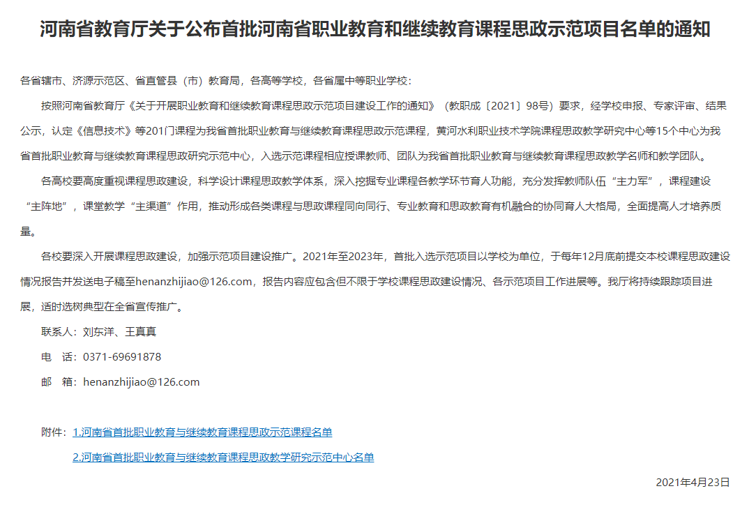 经过专业教师的努力,我系《工程测量》和《建筑装饰工程计量与计价》两门课程顺利入选河南省职业教育和继续教育课程思政示范项目。