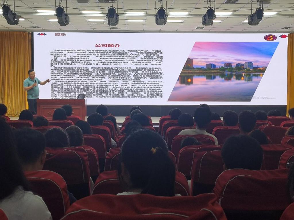 公司人力资源部总监刘杰向同学们全面介绍了公司的发展历程、整体概况、业务范围、企业文化、发展前景、薪资待遇等情况,并围绕学生关心的问题进行重点答疑。